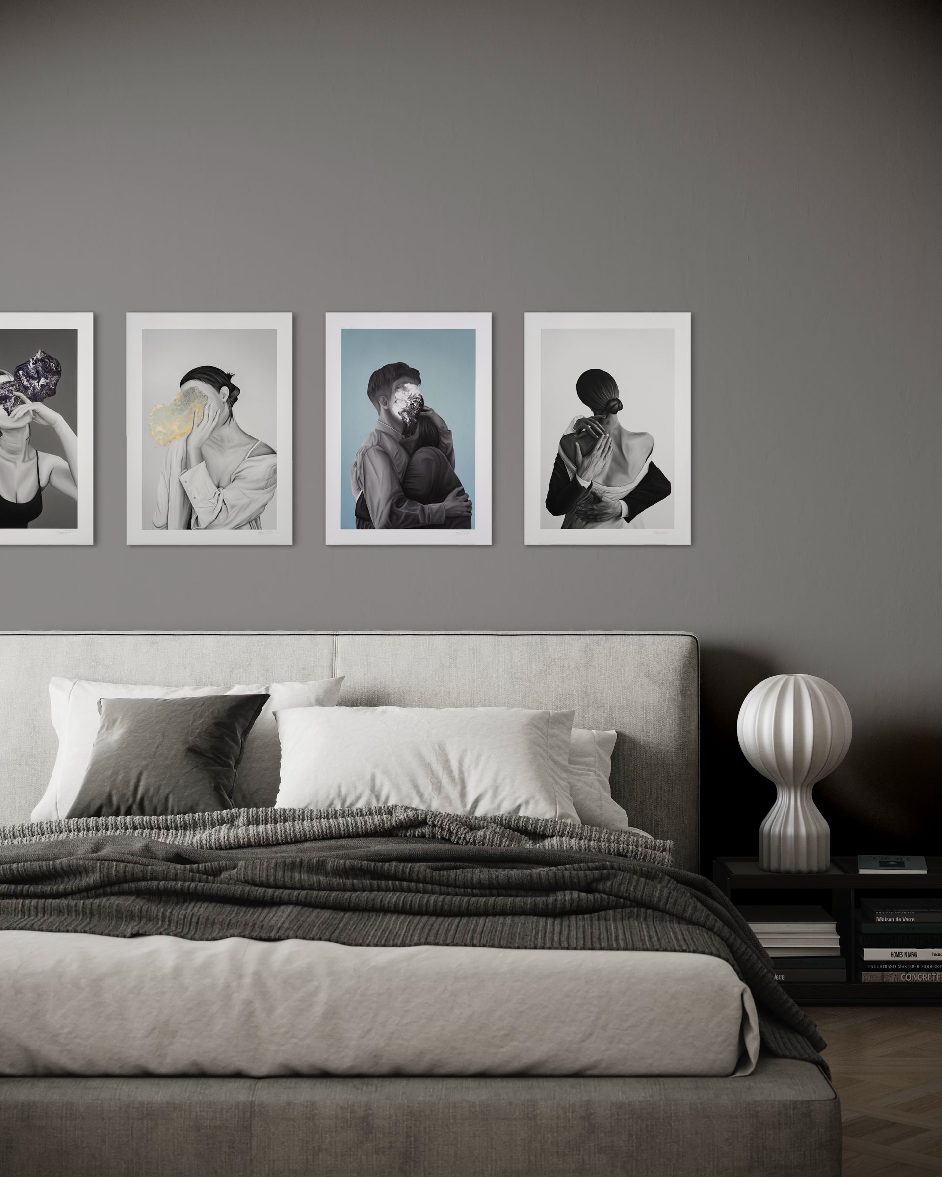Durch den schlichten weißen und 5 cm breiten Motivrand wird der Fokus besonders auf das gedruckte Kunstwerk gelenkt. Im Entwicklungsprozess habe ich sicher gestellt, dass die Drucke nicht nur als Dekoration dienen, sondern vielmehr ihre Wirkung als eigenständiges authentisches Kunstwerk entfalten können.